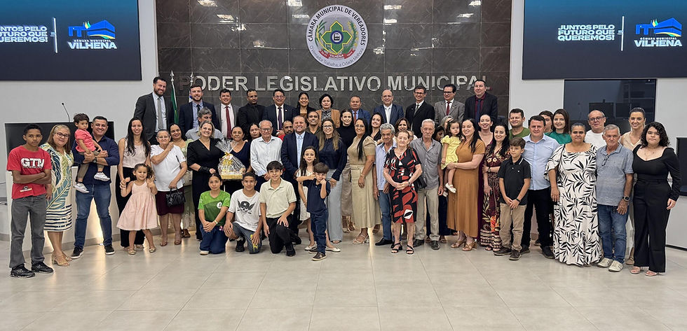 Filhos, netos, bisnetos e outros familiares da pioneira Geralda Ferreira Deiró compareceram a sessão da Câmara Municipal de Vilhena, realizada em sua homenagem, nesta quinta-feira (19). O nome dela será usado para identificar a rua hoje denominada CV 102-57, localizada no Bairro Cidade Verde IV. A homenageada é avó do deputado estadual Cirone Deiró.